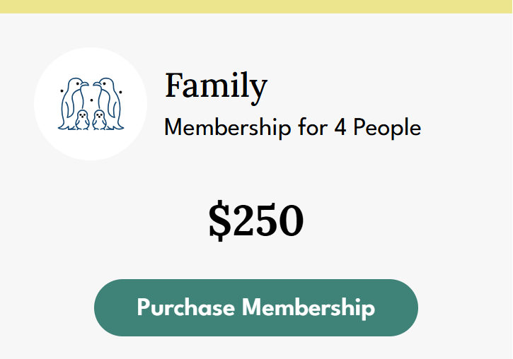 Family Memberhsips allow access to the Aquarium all year long for up to 4 family members. One adult member must be present when visiting the Aquarium. Children 2 and under are FREE and can come along with any membership level.